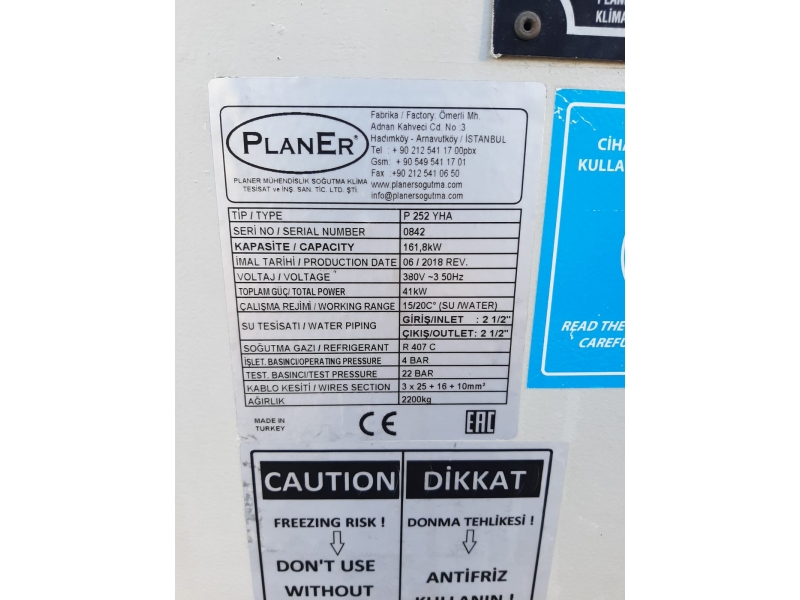 PLANER Marka Hava Soğutmalı Chiller Grubu parçaların tamamı orijinal ve Garantili..